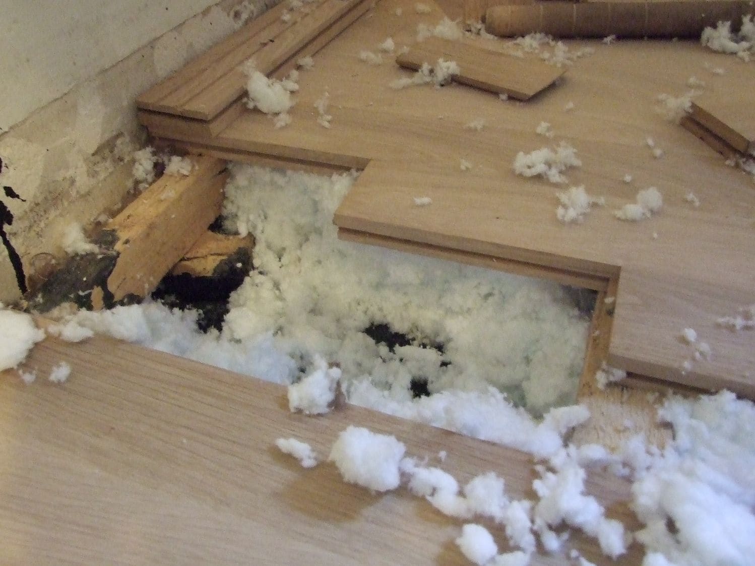 Τα παλιά ξύλινα δάπεδα έχουν κενό μεταξύ του ξύλου και της πλάκας. Τα καδρόνια δημιουργούν κλειστούς θαλάμους και στην περίπτωση μιας ανακαίνισης είναι εύκολο να τοποθετηθεί παρθένος ορυκτοβάμβακας.